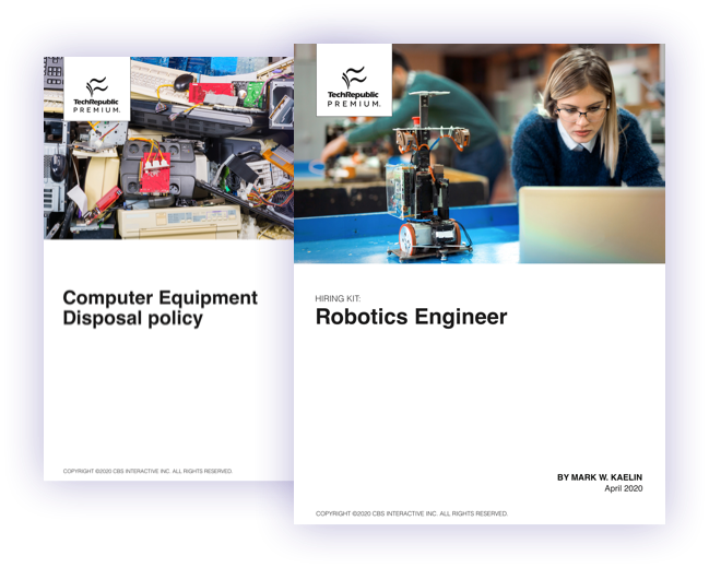 TechRepublic Premium provides the information you need to do your job better and more efficiently. All in one place. Complex tech topics are distilled into concise, yet comprehensive packages. Save time and effort with our readymade policies, templates and tools.